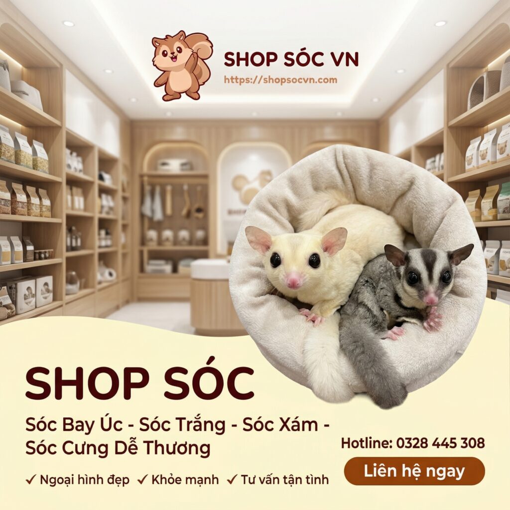 Shop Sóc VN là cửa hàng chuyên cung cấp tất cả các loại sóc kiểng được nhiều khách hàng yêu thích hiện nay. Với định hướng trở thành địa chỉ uy tín dành cho người yêu thú cưng, Shop Sóc VN mang đến nhiều dòng sóc đa dạng như sóc bay Úc, sóc trắng, sóc xám, sóc kiểng mini và nhiều bé có màu lông đẹp, ngoại hình đáng yêu. Mỗi bé sóc tại shop đều được tuyển chọn kỹ, đảm bảo khỏe mạnh, lanh lợi và dễ thích nghi với môi trường nuôi.